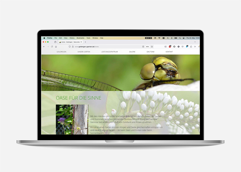 I en del år har jeg fået henvendelser fra gartnerne fra Goldregen fordi der blev ved med at dukke nye tekniske problemer op. Hjemmesiden havde eksisteret i et del år, men teamet var stadig begejstret for designet. De forskellige niveauerne og indtryk passer godt til temaet om naturlige haver, men teknologien ville bare ikke mere.