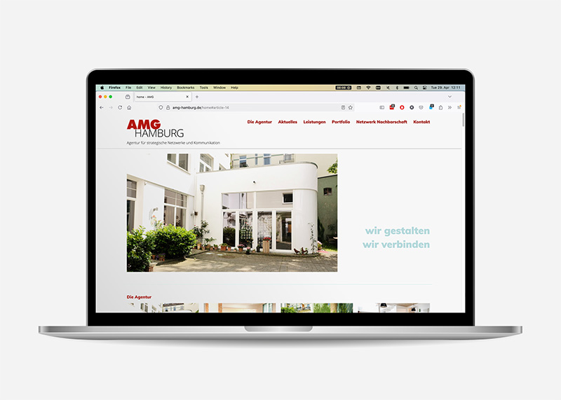 En klart struktureret one-pager for et kommunikationsbureau. Hjemmesiden præsenterer de klassiske elementer som serviceudbud og portefølje i en overskuelig navigation, men skaber samtidig plads til bureauets sociale engagement. Nabonetværket “Netzwerk Nachbarschaft", initieret af ejer Erdtrud Mühlens, får en passende scene i virksomhedens præsentation. Designet afspejler bureauets professionelle kommunikationsevner og viser, hvordan digital tilstedeværelse kan formidle både services og virksomhedsværdier.